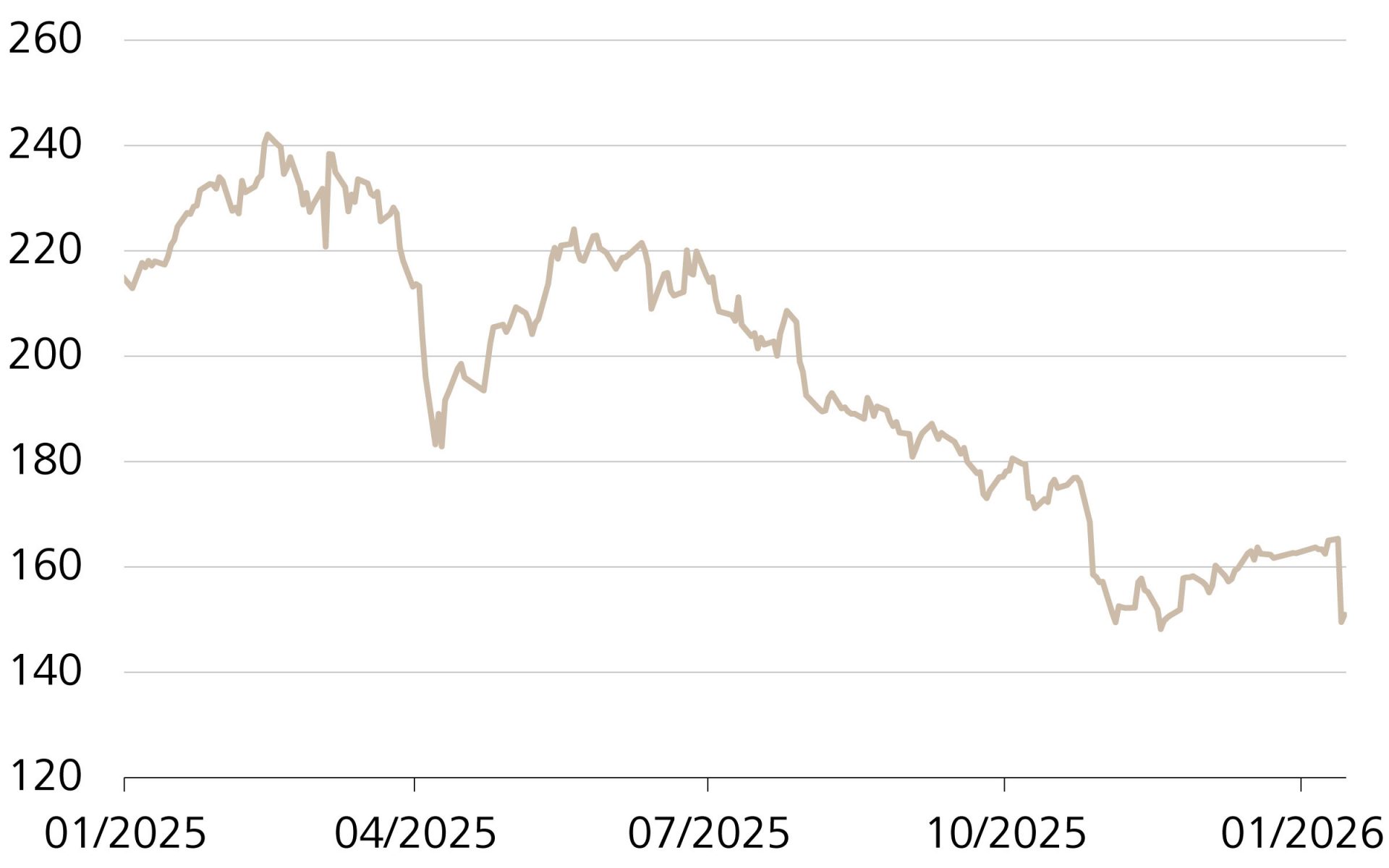 La continua forza del franco svizzero e la crisi del mercato cinese delle costruzioni stanno causando problemi a Sika. Di conseguenza, le vendite sono diminuite del 4.8% nel 2025, più nettamente del previsto. Le azioni dell'azienda specializzata in materiali da costruzione hanno subito una pressione di vendita dopo la pubblicazione dei dati. Nell'anno in corso sono scese del 5.2%. Il titolo si colloca nella parte bassa della Swiss Market Index (SMI). Gli investitori devono quindi continuare ad attendere un'inversione di tendenza dopo la perdita di quasi il 25% registrata lo scorso anno.