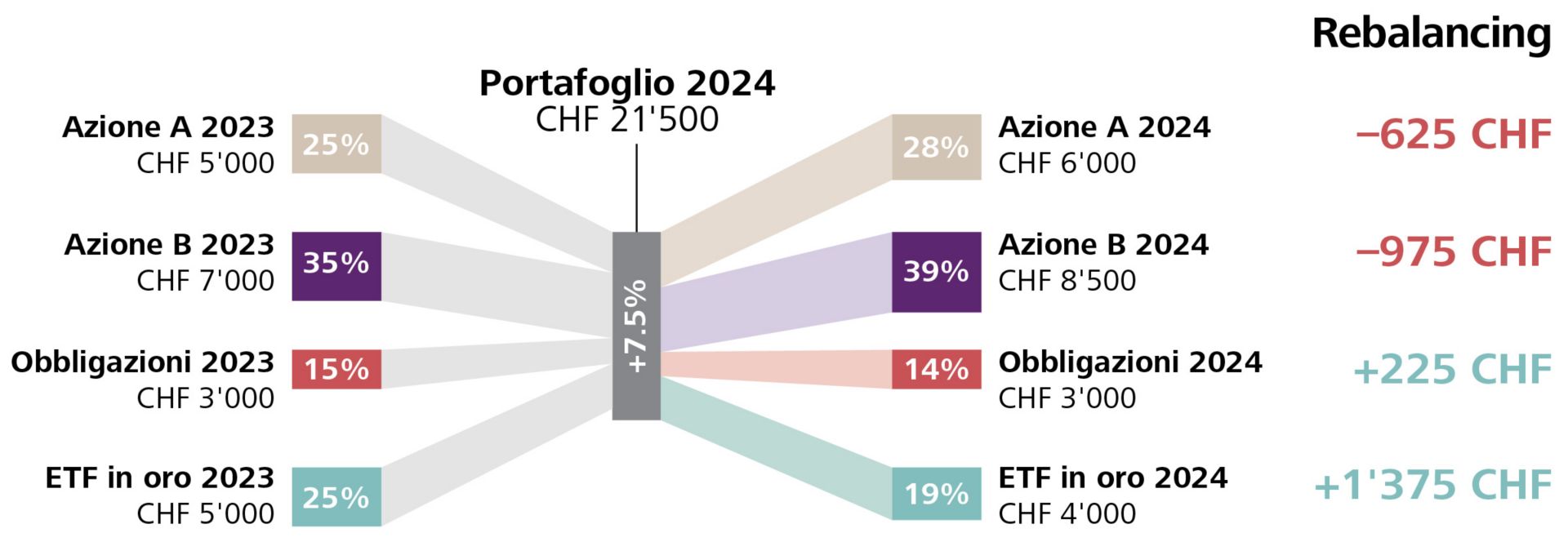 Immaginate che il vostro portafoglio cresca del 7% in un anno. È un ottimo risultato, ma anche un buon momento per verificare la composizione dei vostri investimenti, perché la crescita può far spostare la ponderazione di singole posizioni.