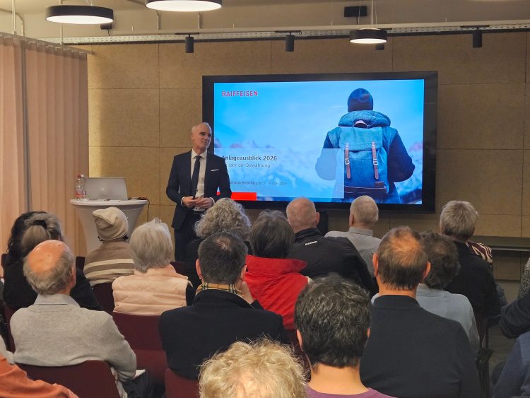 Am 5. Februar 2026 lud die Raiffeisenbank Regio Muttenz zum traditionellen Anlageausblick in der Geschäftsstelle Pratteln ein. Die Teilnehmenden nutzten die Gelegenheit, sich in angenehmer Atmosphäre über die wichtigsten Entwicklungen an den Finanzmärkten sowie über die Chancen und Herausforderungen des neuen Anlagejahres zu informieren. Matthias Geissbühler, Chief Investment Officer von Raiffeisen Schweiz, vermittelte dabei wertvolle Einblicke und Einschätzungen aus erster Hand.