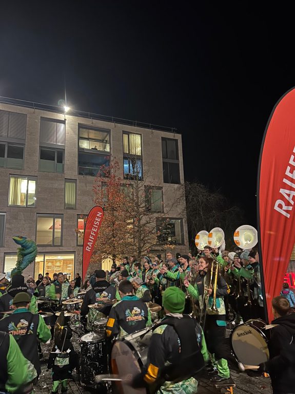 Am 11. November 2025 brachten die folgenden fünf Guggenformationen den Raiffeisenplatz in Niederuzwil zum Beben: Glattburgfäger, Gräppälä Schränzer, Henauer Gugger, Uzepatscher und Thuurvögel.
