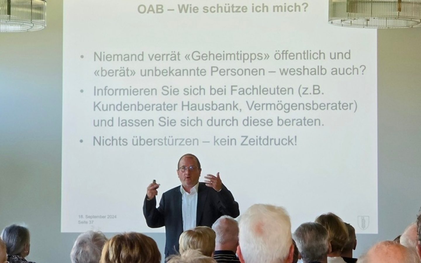 Am Mittwochnachmittag, 18. September 2024, fand unser Fachevent «Wie schütze ich mich vor Online-Betrug?» statt, der auf grosses Interesse stiess. Über 100 Teilnehmende lauschten gespannt den Ausführungen von Kurt Humm, Leiter der Abteilung Wirtschaftsdelikte der Kantonspolizei St.Gallen, der über verschiedene Praxisfälle aus seinem Berufsalltag berichtete.