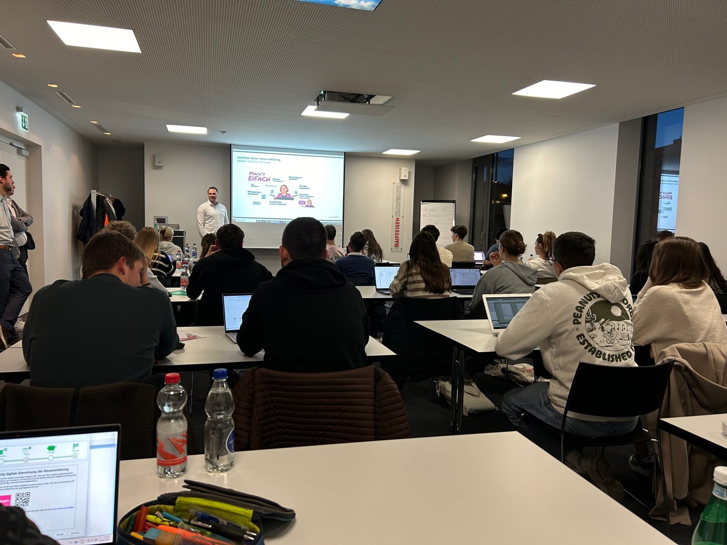 Im ersten Teil erklärte Fabian Baur, Leiter Vorsorge- und Pensionsberatung Schritt für Schritt durch den Prozess und vermittelten das Wissen ohne kompliziertes Fachchinesisch. Die Jugendlichen erhielten wertvolle Tipps, wie sie bei ihrer Steuererklärung sparen können und lernten, welche Abzüge und Freibeträge sie geltend machen können. Zudem standen unsere Kundenberaterinnen und Kundenberater jederzeit für individuelle Fragen zur Verfügung und gaben hilfreiche Ratschläge und Tricks aus der Praxis.