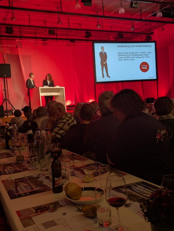 Die Banknacht vom 13. März 2026 war mehr als ein traditioneller Anlass. Dank der eindrücklichen Zustimmung zur Fusion der Raiffeisenbank Regio Uzwil und der Raiffeisenbank Niederhelfenschwil verwandelte sich der Abend an allen Standorten in ein festliches Zeichen des Zusammenhalts. Die Stimmung war herzlich, das Interesse gross und die Freude über die gemeinsame Zukunft klar spürbar.