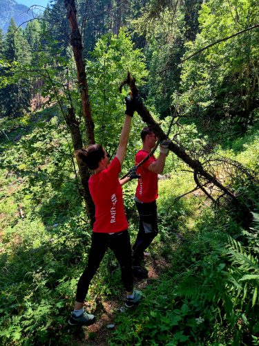 Zeitgleich machte eine gruppe gemeinsam mit dem Forst Leuk in der Region Oberems in der Region Oberems Wanderwege frei, um die Zugänglichkeit und Sicherheit für Wanderer zu verbessern.