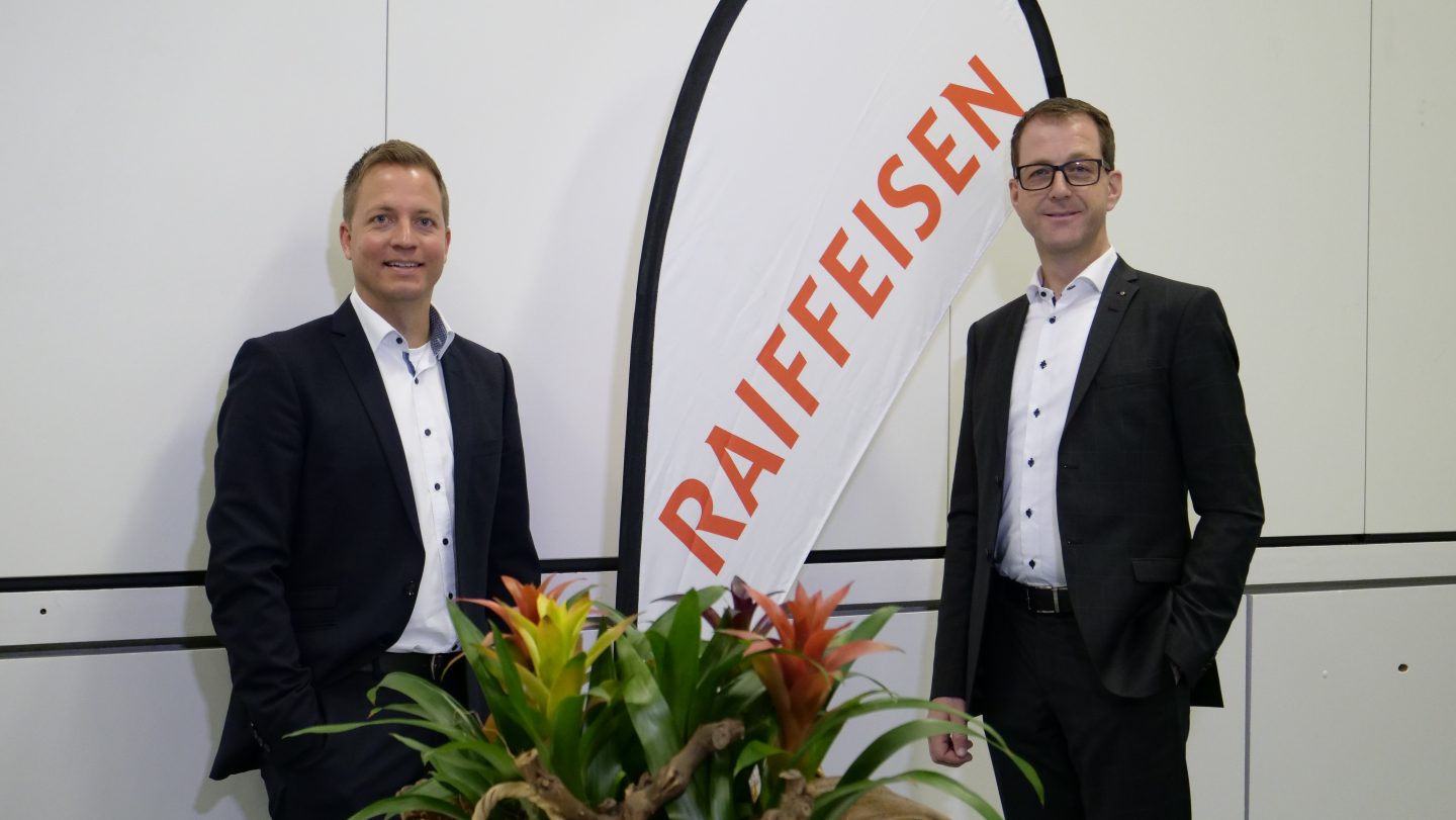 v.l.n.r.: Reto Hübscher (Vorsitzender der Bankleitung Raiffeisenbank Merenschwand-Obfelden), Kilian Rosenberg (Verwaltungsratspräsident der Raiffeisenbank am Lindenberg)
