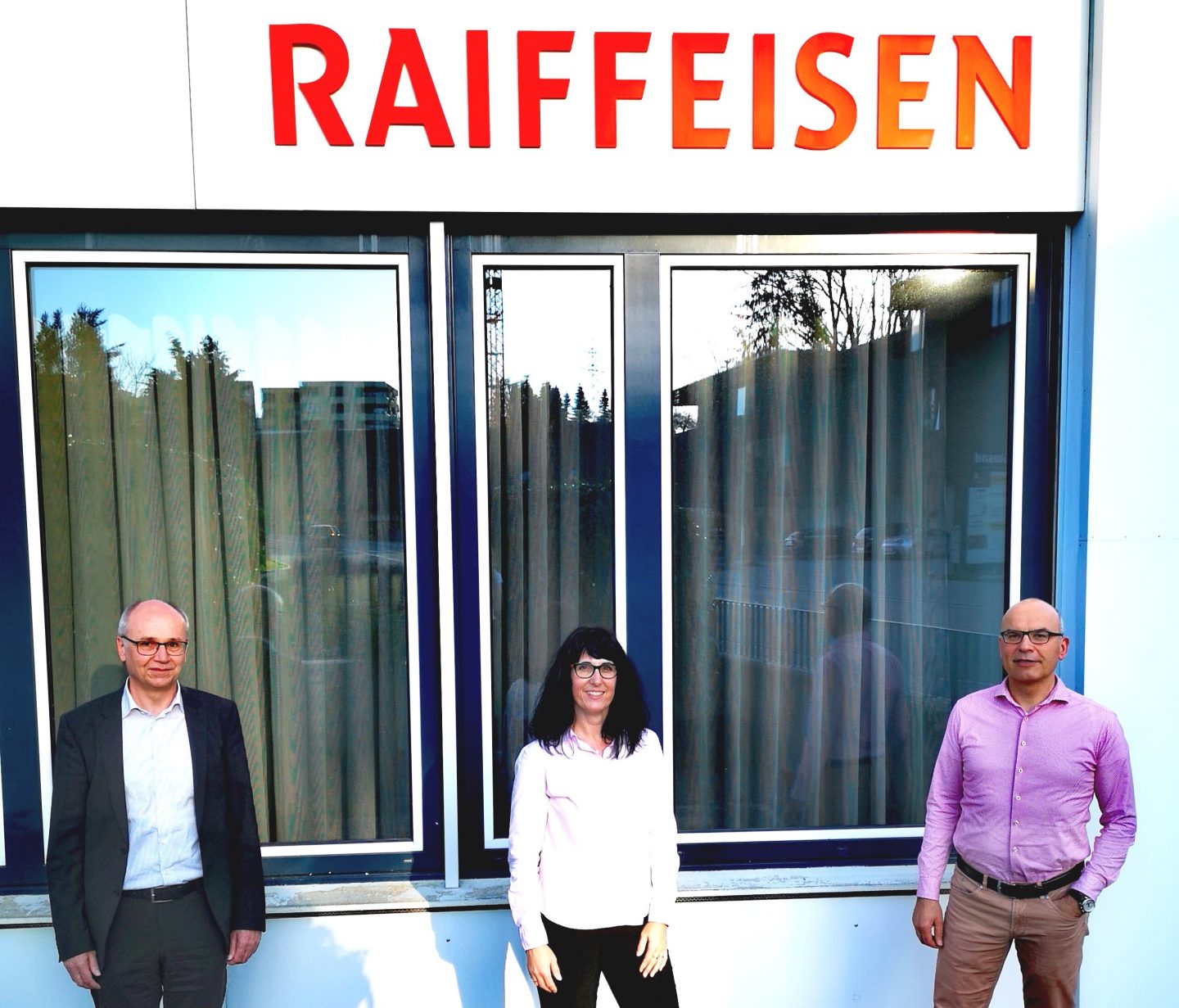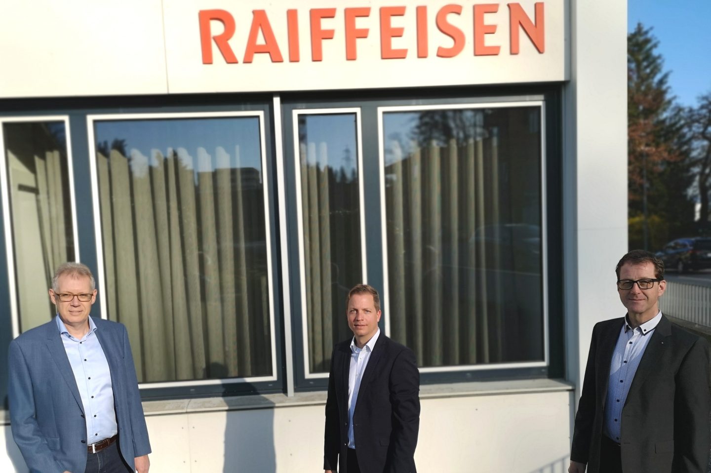 Fotolegende (v.l.n.r.): André Kissling, neuer Vizepräsident; Reto Hübscher, Vorsitzender der Bankleitung; Kilian Rosenberg, neu gewählter Verwaltungsratspräsident der Raiffeisenbank Reuss-Lindenberg