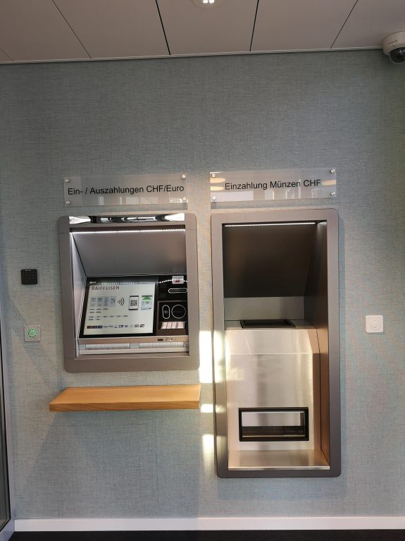 In den 24-Stunden-Zonen steht Ihnen je ein moderner Ein- und Auszahlungsautomat rund um die Uhr zur Verfügung. Diese sind ab dem 10. Dezember 2024 geöffnet, um Bargeldgeschäfte in CHF und EUR bequem und sicher abzuwickeln. Bei Fragen zur Bedienung der Geräte stehen unsere Mitarbeitende mit Rat und Tat zur Seite. Die Kundenzonen eröffnen eine Woche später am Montag, 16. Dezember 2024.