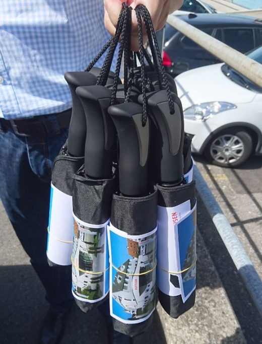 Vom 6. bis 8. Juni 2017 waren sie in Dreierdelegationen in Obfelden unterwegs, die Mitarbeiter der örtlichen Raiffeisenbank. Im Gepäck: Schirme für sämtliche Haushalte im Dorf. Diese wurden gemeinsam mit einem Flugblatt unter dem Motto "wir lassen Sie nicht im Regen stehen" in die Briefkästen gelegt. Damit wolle man sich einerseits bei den bestehenden Kunden für die Treue bedanken, andererseits auch potenzielle Neukunden auf die Bankdienstleistungen im Dorf aufmerksam machen. „Wir sind ja mittlerweile die einzige Bankstelle im Dorf“, so Rafael Jäger, der die Geschäftsstelle seit Dezember 2014 leitet. Die Jubiläumsaktion passt übrigens bestens zur Genossenschaftsbank, deren Ursprung vor über 150 Jahren als Grundgedanke der Selbsthilfe im Dorf entstanden ist.