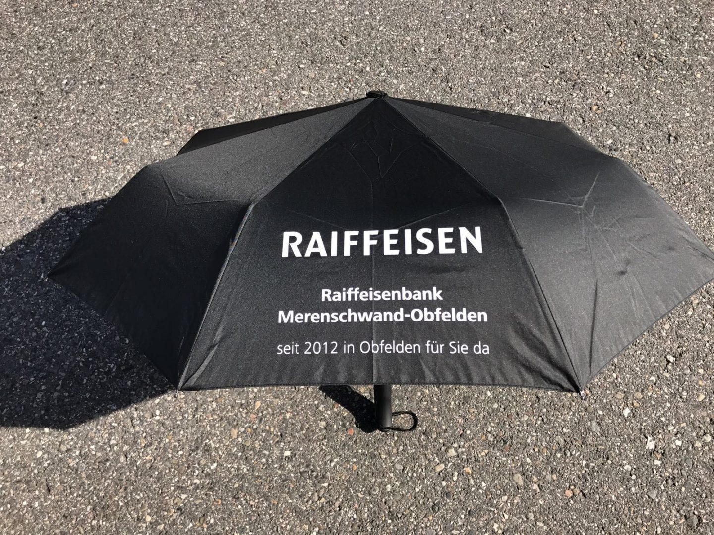 Die Schirm-Verteil-Aktion sei bei der Bevölkerung übrigens durchwegs positiv angekommen, verrät Rafael Jäger. So haben sich bereits verschiedene Kundinnen und Kunden bedankt und zum Jubiläum gratuliert. Auch wenn ein Regenschirm zurzeit nicht zum sommerlichen Wetter passt, wird es bestimmt noch genügend Gelegenheiten für dessen Gebrauch geben und die Raiffeisenbank Merenschwand-Obfelden in guter Erinnerung rufen.