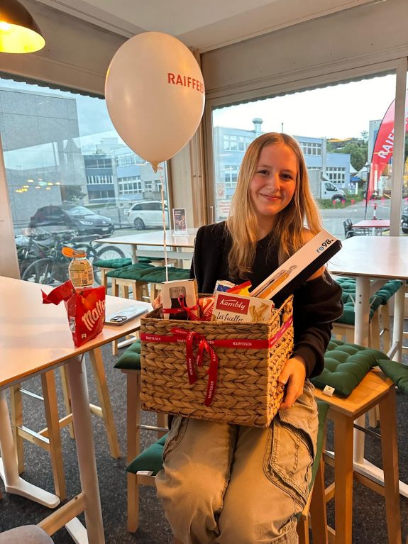 Der HotDog-Schmaus verabschiedete die «U16-Gruppe» und hiess parallel die älteren «Ü16's» herzlich am Anlass willkommen. Ein Wettbewerb mit drei Schätzfragen liess total sechs glückliche Gewinner nach Hause gehen - sie alle durften ein schöner und voll gefüllter Sommer-Apérokorb mit nach Hause nehmen. Eine Frage: Bis zu welchem Alter können Studentinnen und Studenten vom Raiffeisen-Bankpaket «Young Member Student» profitieren? Die Lösung hiess 30 Jahre, was für die meisten mit Hilfe des Gratistipps und dem Besuch auf der Webseite mit Bravour gelöst werden konnte. 👏