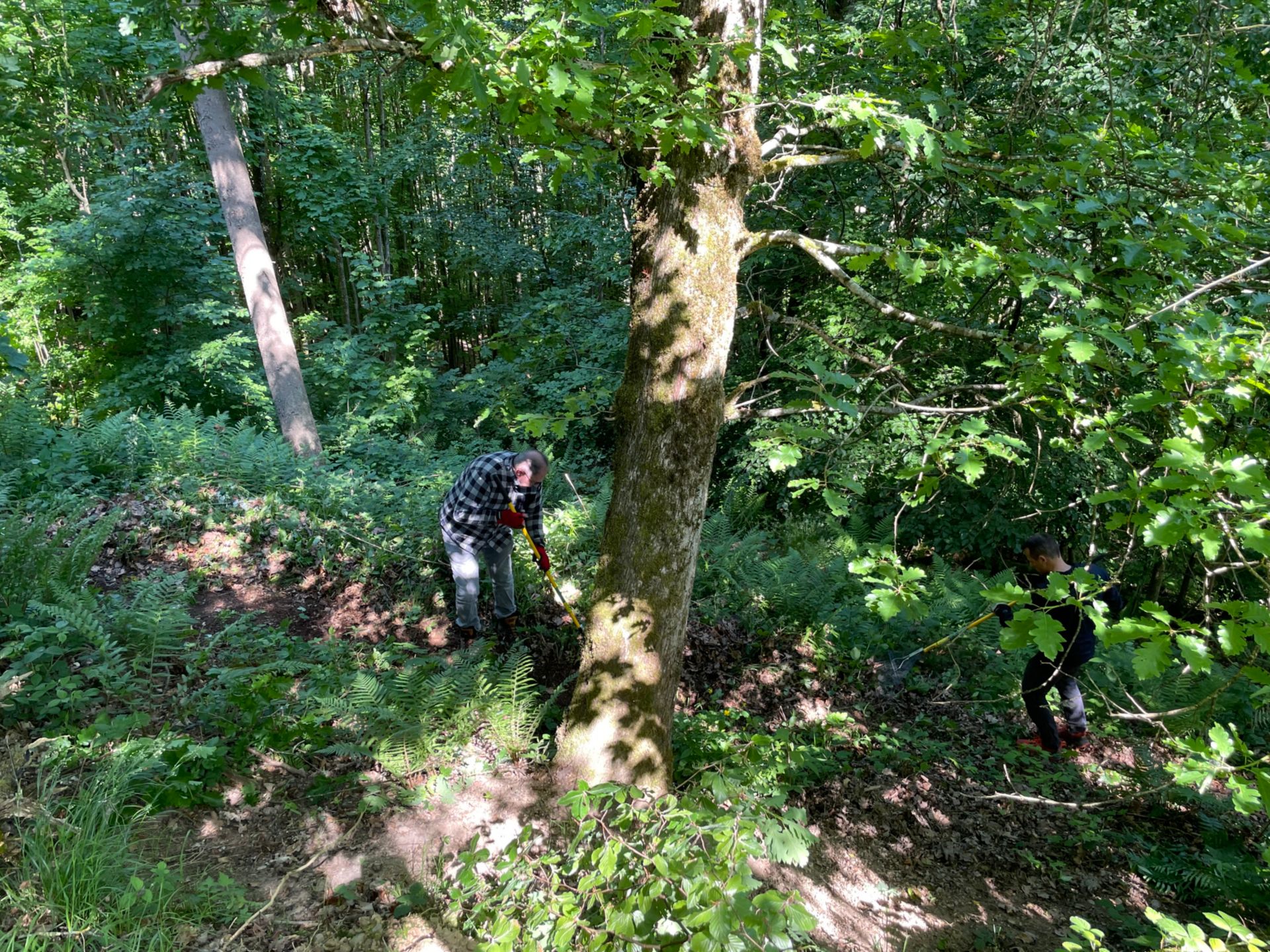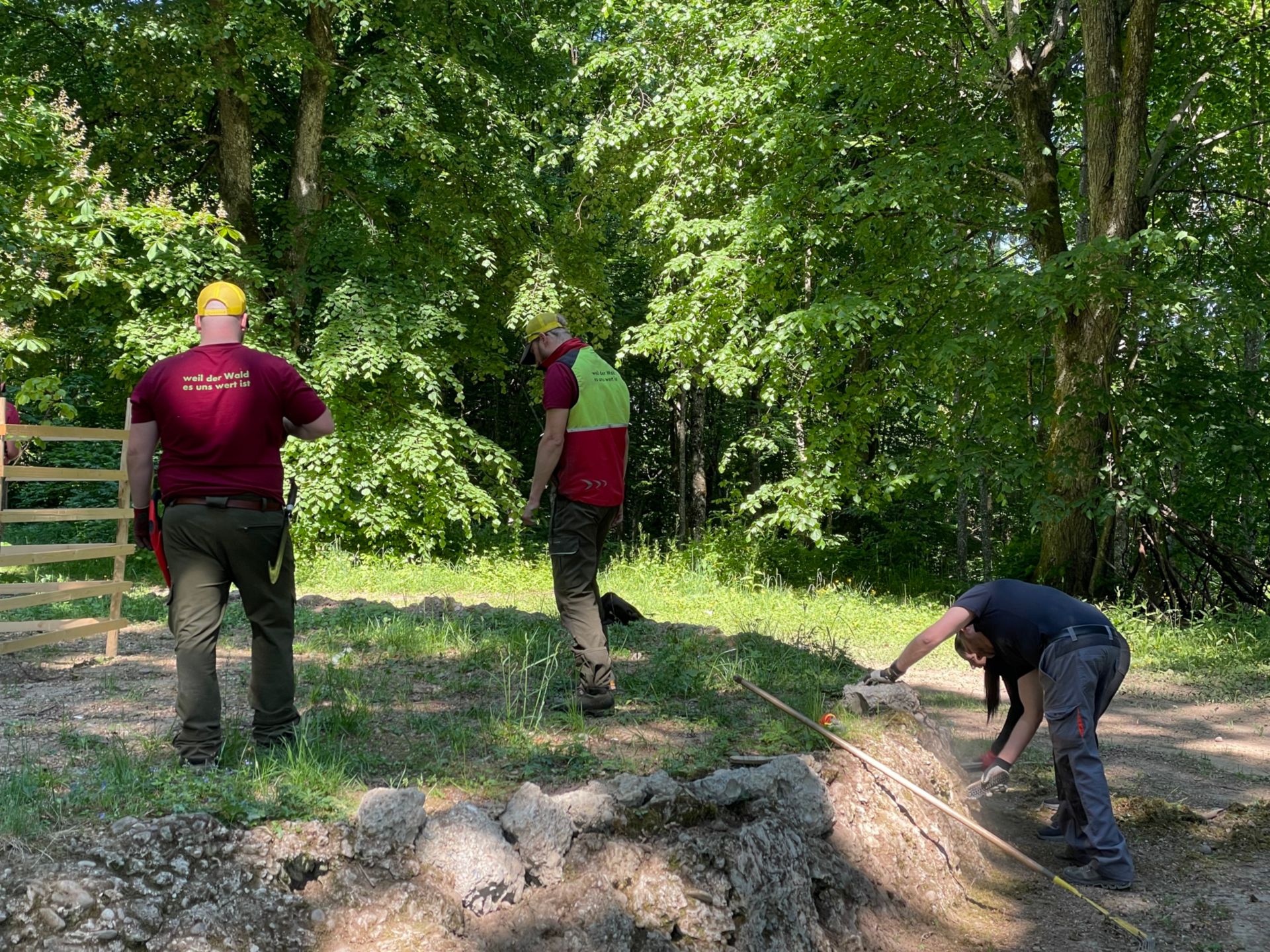 Anfang Mai wurde die Feuerstelle auf dem Festplatz in Neunkirch verschönert. Gemeinsam mit drei Mitarbeitenden des Forsts Südranden pflegten wir die Umgebung des Grillplatzes im Rahmen eines eintägigen Arbeitseinsatzes. Dabei wurde unter anderem die Mauer rund um die zentrale Erhebung von Moos befreit, zwei Zugangswege freigeräumt und Brombeersträucher zurückgeschnitten – damit junge Bäume wie die Eiche wieder mehr Licht zum Wachsen erhalten.