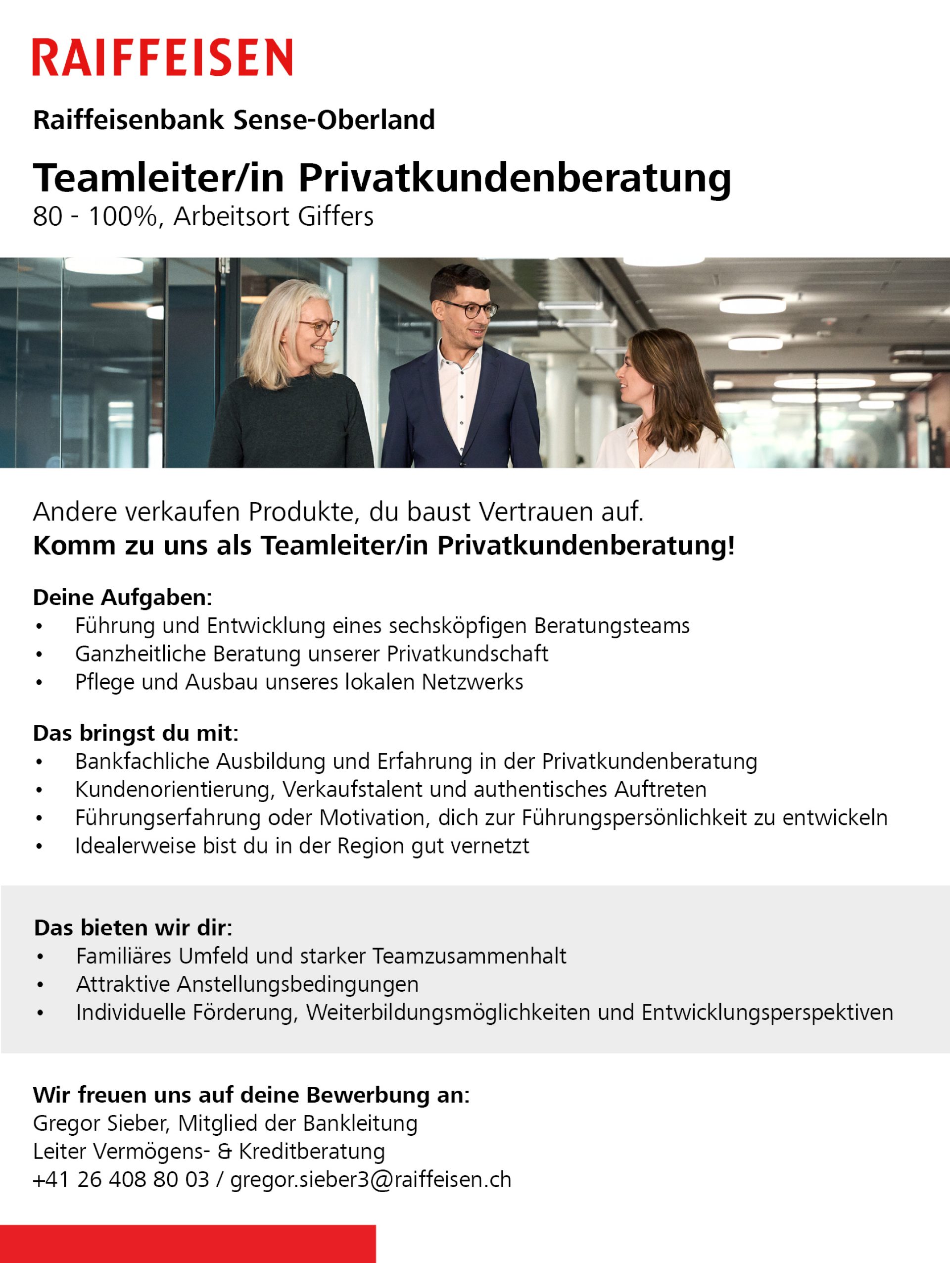 Aktuelle Stellenangebote bei der Raiffeisenbank Sense-Oberland: