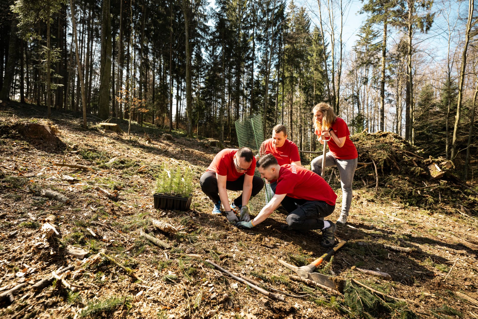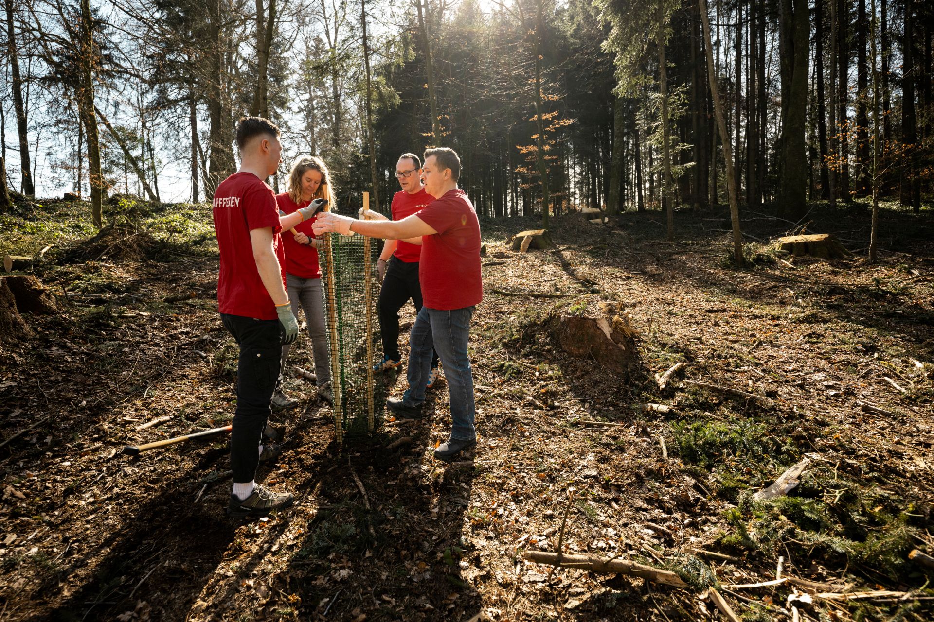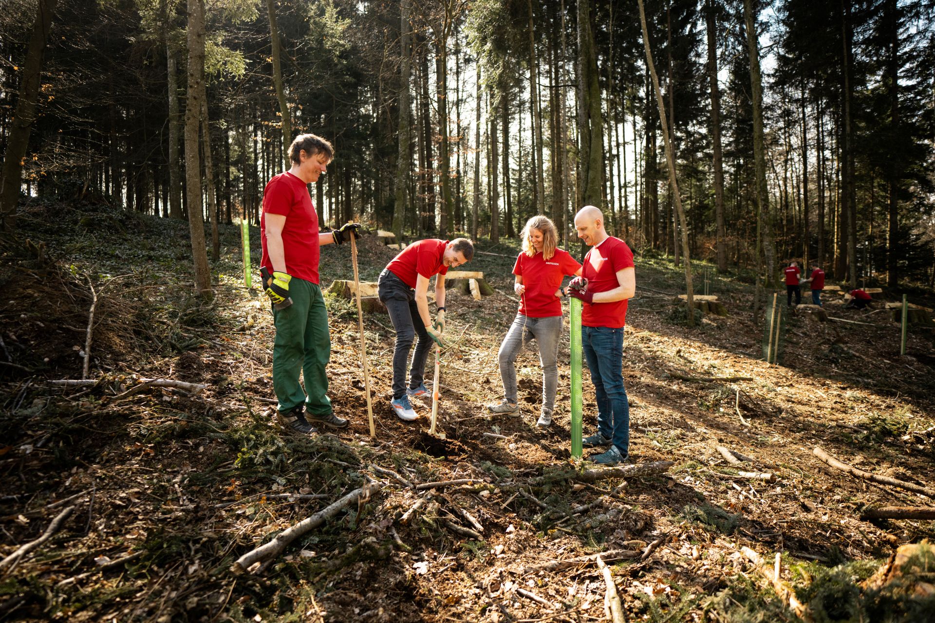 Mit viel Einsatz und Teamgeist pflanzten unsere Mitarbeitenden insgesamt 170 Baumsetzlinge in den Gemeinden St. Antoni und Heitenried.