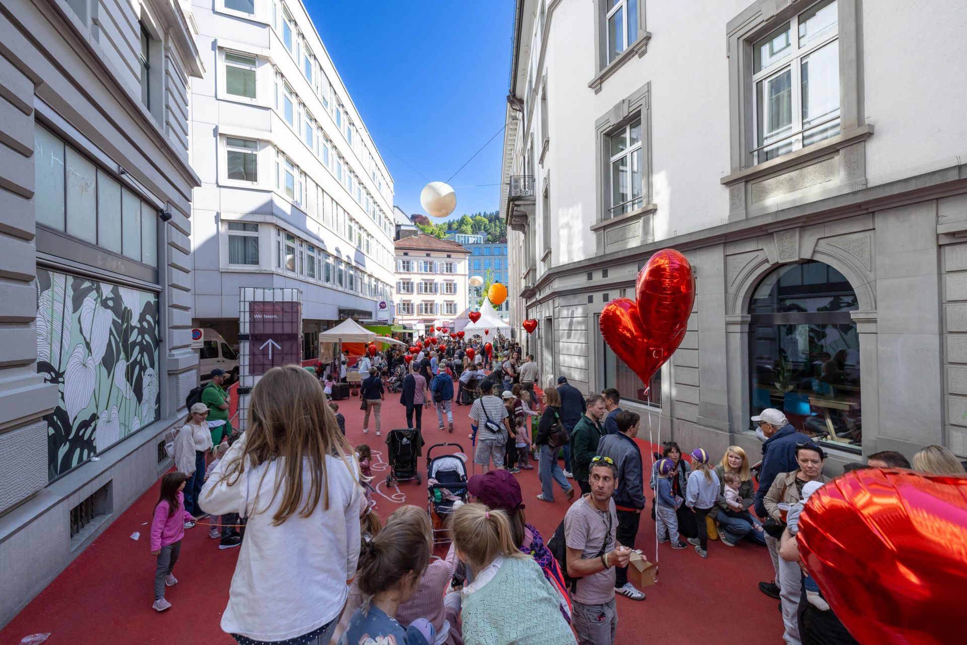 Genossenschaftsmitglieder profitierten am Anlass von speziellen Vorteilen bei Verpflegung und Getränken und als Highlight gab es den heiss begehrten Herzballon dazu. Diese waren ein echter Hingucker – wie kleine Botschafter des Glücks schwebten sie durch die Gassen und versprühten Herzensfreude.