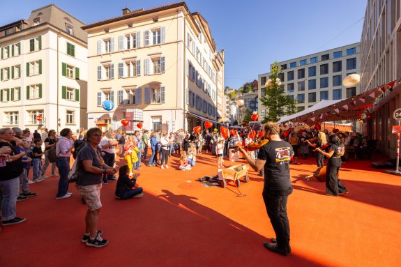 Auf dem Roten Platz und an der Vadianstrasse erwarteten Sie an verschiedenen Schauplätzen spektakuläre und mitreissende Auftritte von Strassenkünstlerinnen und -künstlern. Sie unterhielten mit Akrobatik, Tanz, Musik, Theater oder Magie. Es freut uns, dass wir mit unserem Sponsoring wiederum einen speziellen Act ermöglichen konnten: Walking-Acts. Wir liessen den Hippo Nellie zwischen dem Roten Platz und der Altstadt flanieren. Er sang, tanzte, weinte und lachte. Er war ein ganz spezielles Highlight. Haben auch Sie ihn gesehen? Denn übersehen konnte man ihn kaum. Egal ob Gross oder Klein, es hatte für alle etwas dabei. Natürlich durfte auch der Genuss nicht zu kurz kommen. Dafür sorgten verschiedene Getränkestationen sowie kulinarische Angebote der umliegenden Restaurants und zwei Foodständen.