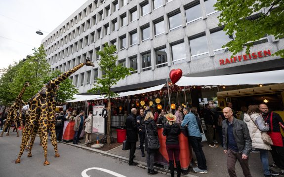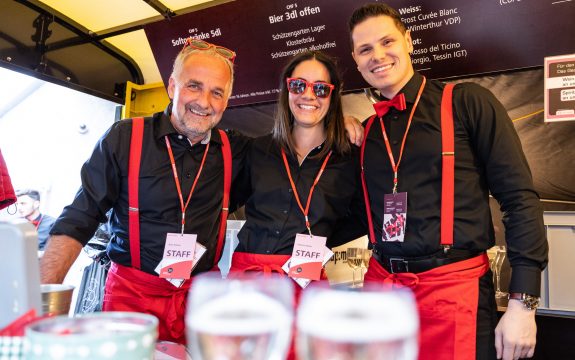 Ein herzliches Dankeschön geht auch an unsere Mitarbeitenden. Insgesamt standen 84 Mitarbeiterinnen und Mitarbeiter im Einsatz für «Aufgetischt bei Raiffeisen» und haben ihren Anzug gegen einen speziellen Festivallook eingetauscht. Gemeinsam haben wir am 10. Buskers Festival St.Gallen mit über 60 Personal-Einsätzen vier Baren und zwei Info-Stände betrieben. Ganz nach dem Motto: Mittendrin statt nur dabei. Ein grosser Applaus an alle Mitarbeitenden für ihr Engagement! Ohne euch wäre der Anlass nicht möglich gewesen.