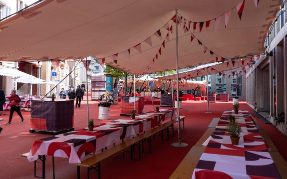Als St.Galler Bank engagieren wir uns für die lokale Kulturszene und unterstützen Klein- und Mittelunternehmen der Region. Dabei möchten wir zu einem bunten, lebendigen und einzigartigen St.Gallen beitragen und packen gerne auch mal selbst mit an. Lokales Engagement ist für uns mehr als nur schöne Worte. Wir unterstützten das Festival Aufgetischt St.Gallen sowohl als Sponsoring-Partnerin als auch mit Manpower vor Ort. Ganz nach dem Motto: Mittendrin statt nur dabei. Dank dieser Partnerschaft ergab sich eine einzigartige Kombination für unseren ersten Mitgliederanlass. Damit unsere Mitglieder das Spektakel gemeinsam mit ihren Liebsten geniessen konnten, war der Anlass öffentlich und somit für alle zugänglich.