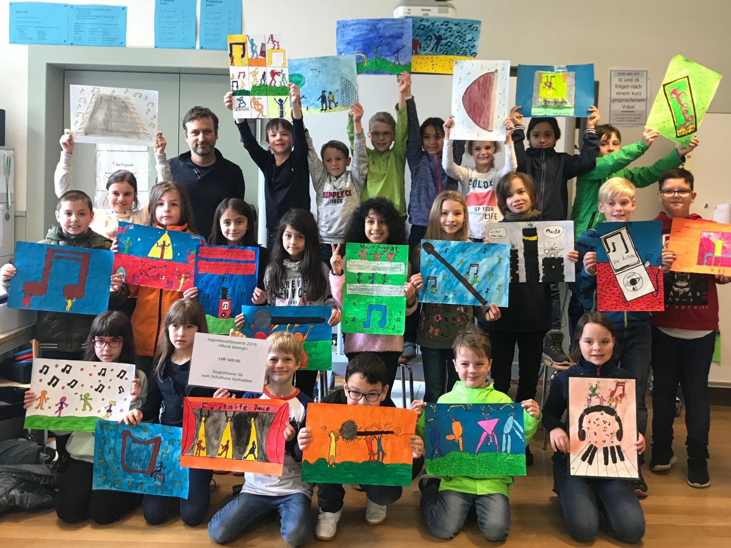 Die Klasse 3b vom Schulhaus Gerhalden (Lehrer Ruedi Fäh) hat den Klassenpreis des 49. Raiffeisen-Jugendwettbewerb gewonnen. Die Schülerinnen und Schüler haben im 2019 das Thema «Musik bewegt» aufgenommen und dieses dann attraktiv ausgestaltet. Inspiriert wurden die Schüler durch die bunten, tanzenden Comicfiguren von Keith Haring, welchen sie im Unterricht thematisiert haben.