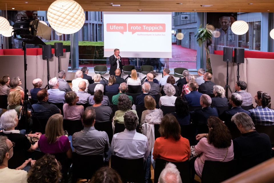 Die Sendung «Ufem rote Teppich» bringt spannende Persönlichkeiten aus der Region vor die Kamera. Produziert von der Raiffeisenbank St.Gallen und online ausgestrahlt im TV-Format von stgallen24, bietet jede Folge neue Talk-Gäste, inspirierende Geschichten und überraschende Einblicke.