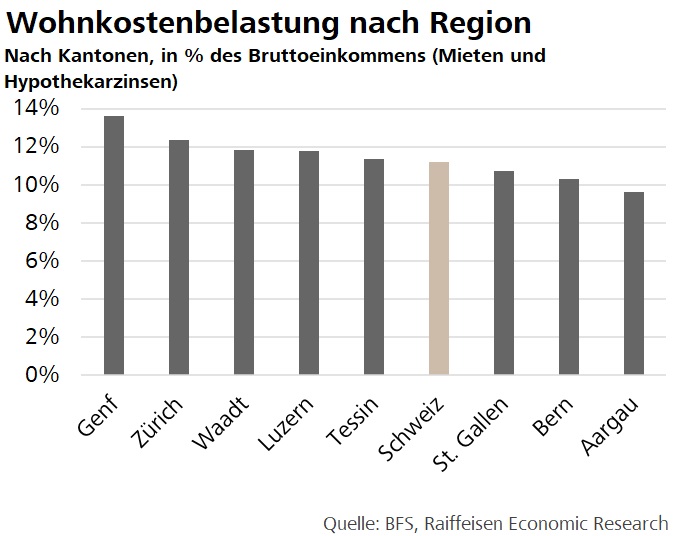 Der in immer mehr Regionen spürbar werdenden Wohnungsknappheit ist in den letzten Monaten viel mediale und politische Aufmerksamkeit entgegengekommen. «Die öffentliche Debatte hat bisher aber weder über die Dringlichkeit und die Schwere des Problems noch über mögliche Lösungswege einen breiten Konsens hervorgebracht. Tatsächlich verleitet ein Blick auf die wesentlichen Indikatoren auf nationaler Ebene dazu, die Situation als nicht besonders dramatisch zu bewerten», so Martin Neff. So liegt etwa die Leerwohnungsziffer mit 1,31 Prozent noch deutlich über dem langjährigen Schnitt von 1,07 Prozent seit den 1980er Jahren. Solche Durchschnittsbetrachtungen verdecken aber, dass der Markt in einigen Regionen bereits völlig ausgetrocknet ist. Die noch leerstehenden Wohnungen sind meist nicht am richtigen Ort. Zudem stehen alle Anzeichen in diesem Markt auf eine weitere deutliche Anspannung. «Die akute Wohnungsknappheit wird sich in immer mehr Regionen ausbreiten. Spätestens nächstes Jahr dürfte die Leerwohnungsziffer den genannten langfristigen Mittelwert bereits deutlich unterschreiten», ist Neff überzeugt. Mit der Wohnraumverknappung wird Wohnen für immer mehr Haushalte bald deutlich teurer. Zudem zeichnen sich bereits dieses Jahr zwei Erhöhungen des Referenzzinssatzes ab. Auch dadurch werden die Wohnkosten für viele Mieterhaushalte in absehbarer Zeit kräftig steigen.