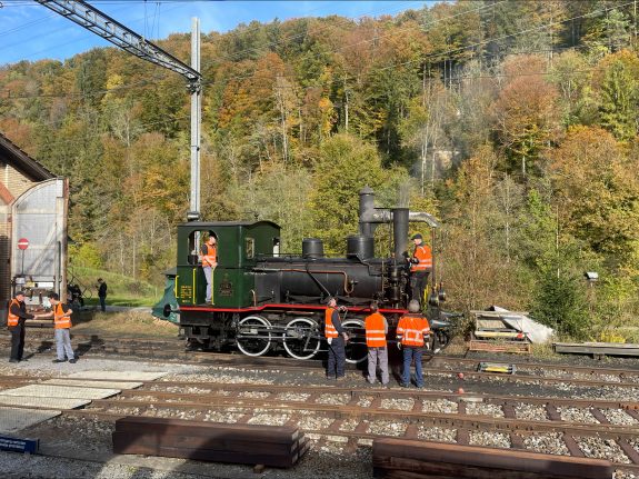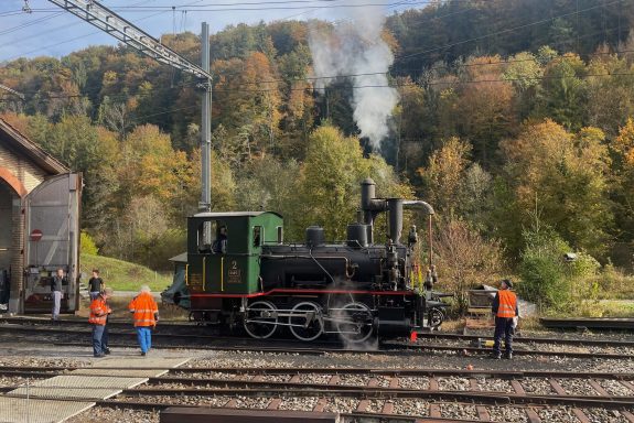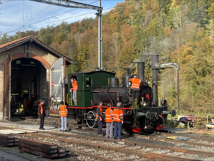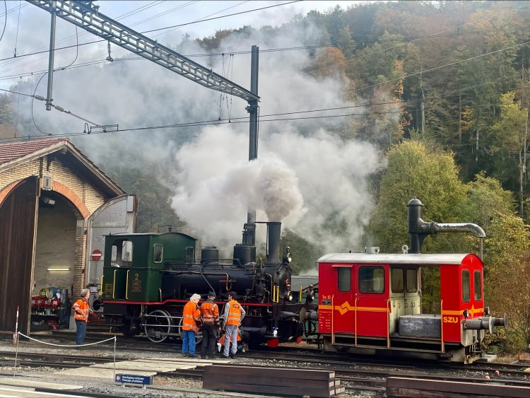 Der herbstliche Nebel über dem Sihlwald lichtete sich noch vor Eintreffen der ersten Gäste, aber auch die Dampflokomotive hüllte sich da bereits in dichtem Rauch. Vor dem Morgengrauen hatte die grosse hölzerne Flügeltür den «Schnaaggi-Schaaggi» aus seiner altehrwürdigen Remise freigegeben und die letzten gekonnten Handgriffe wurden gemacht um die 100-jährige Lokomotive auf ihre Fahrt vorzubereiten.