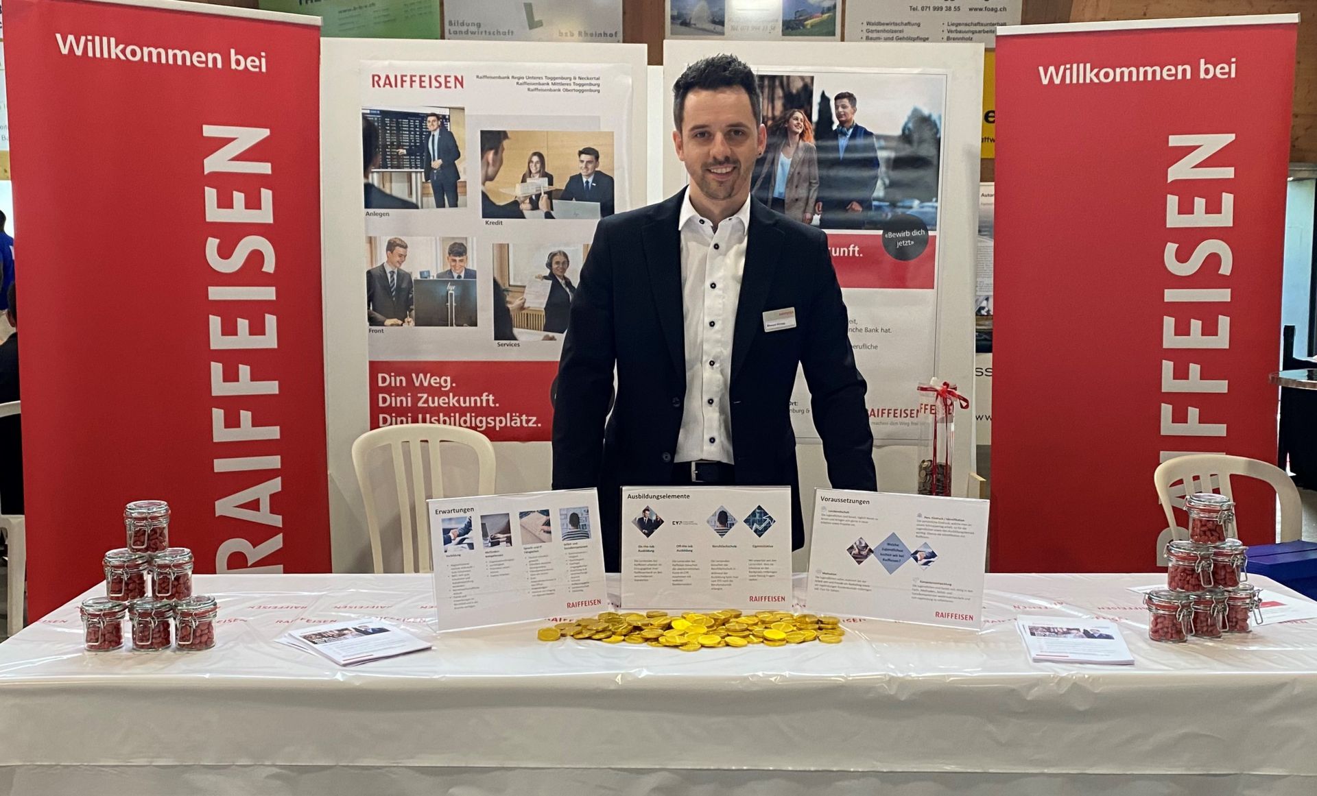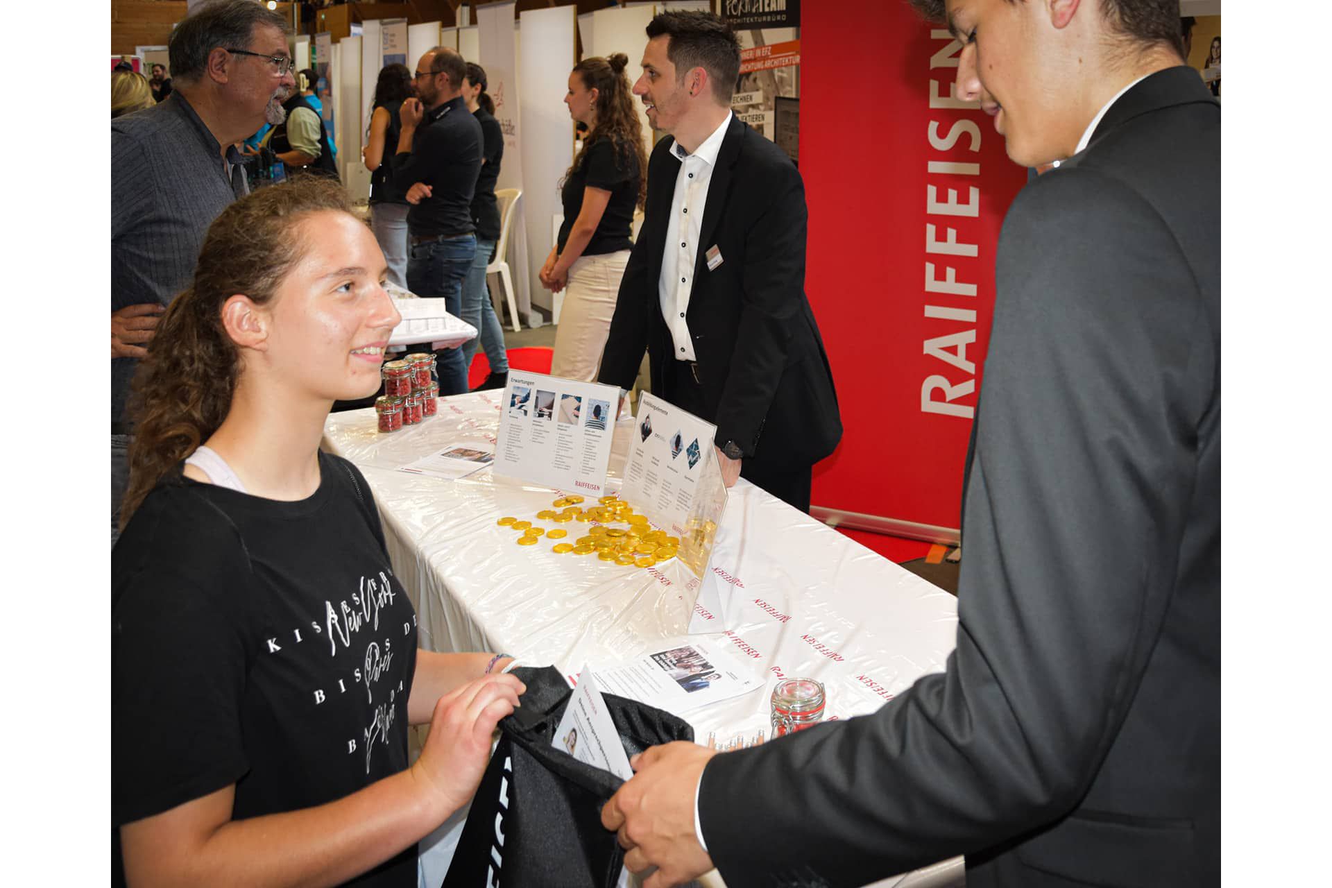 Seit 2015 gibt es im Toggenburg dieses Angebot für die Oberstufenschüler:innen, die sich auf einen neuen Lebensabschnitt vorbereiten. Die Toggenburger Raiffeisenbanken sind jeweils mit einem Stand präsent um Interessierten die Vorteile einer Bankausbildung und deren Ablauf näherzubringen.