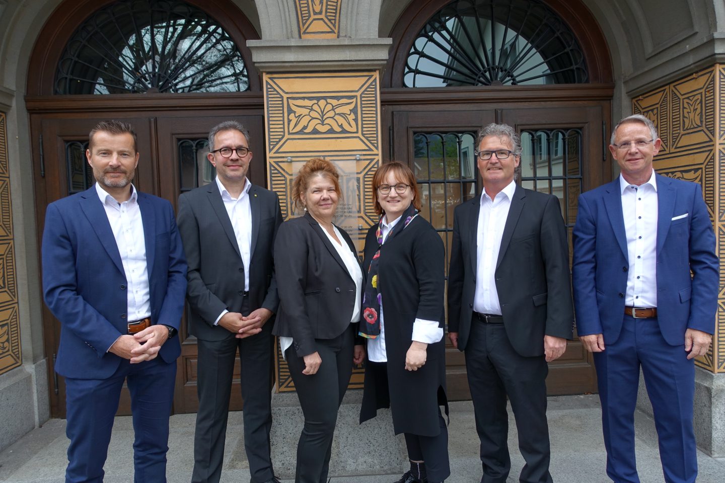 Der wiedergewählte Verwaltungsrat (von links nach rechts) Markus Christen, Urs Aschwanden, Manuela Cathry, Angela Dillier-Gamma, Toni Epp, Peter Perren. Auf dem Bild fehlt Elda Saurer-Berther
