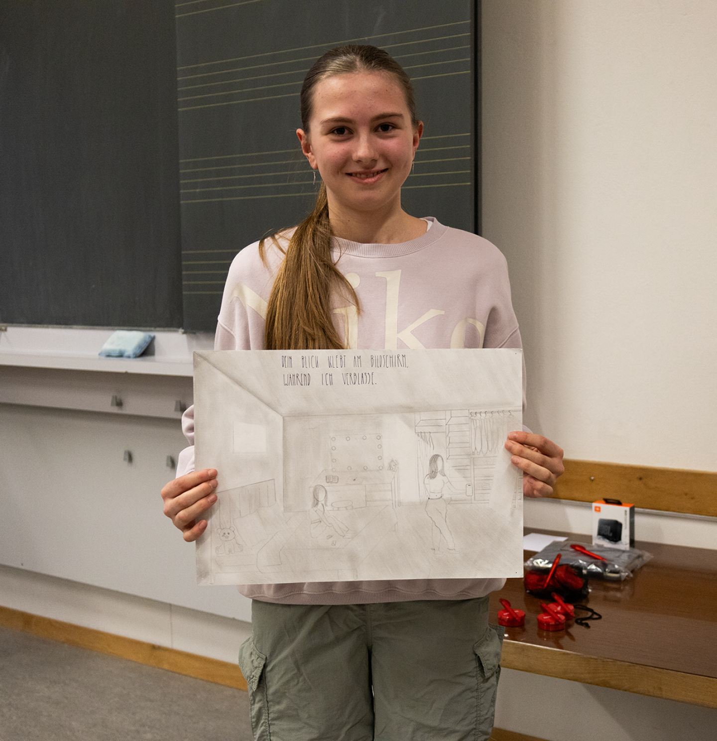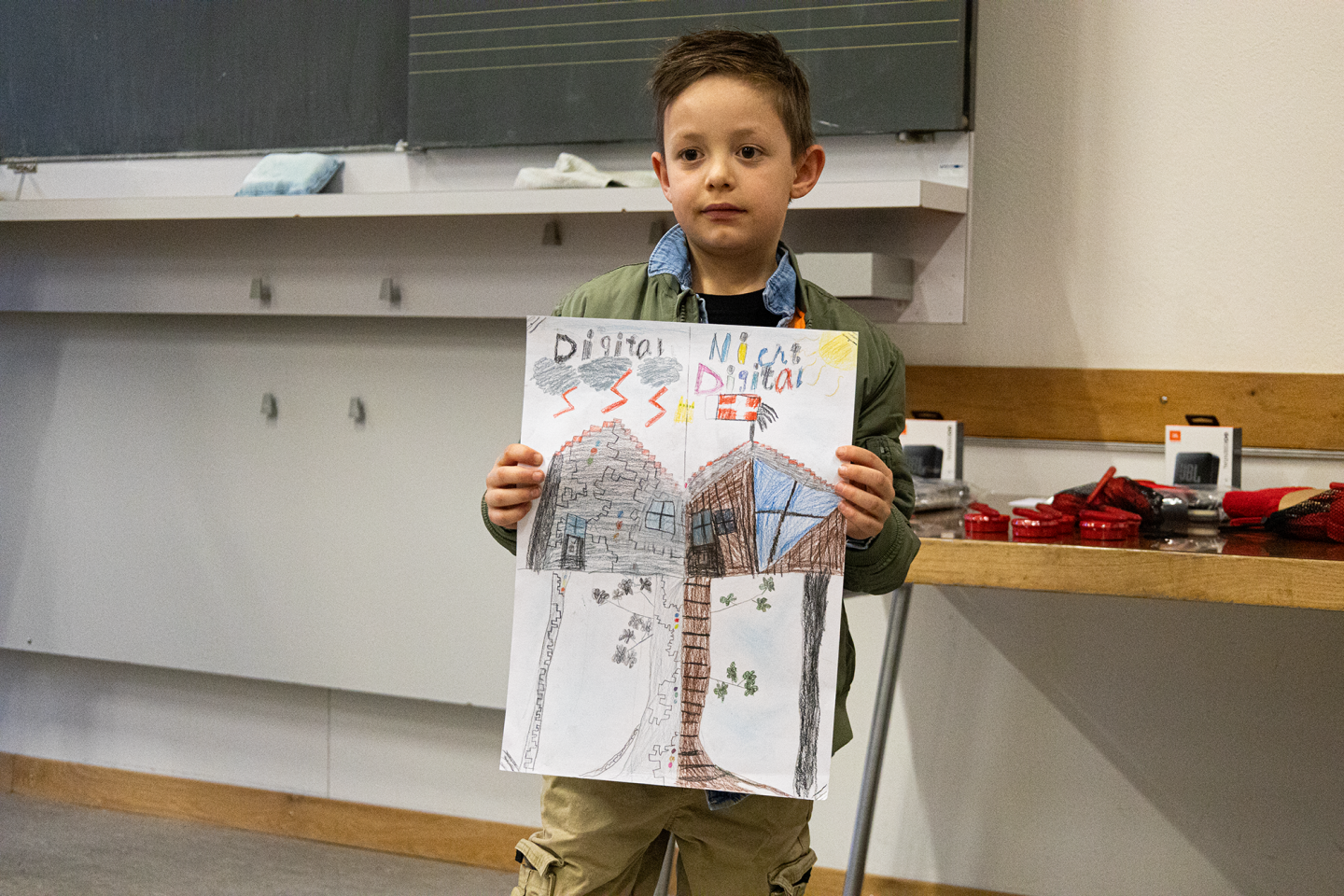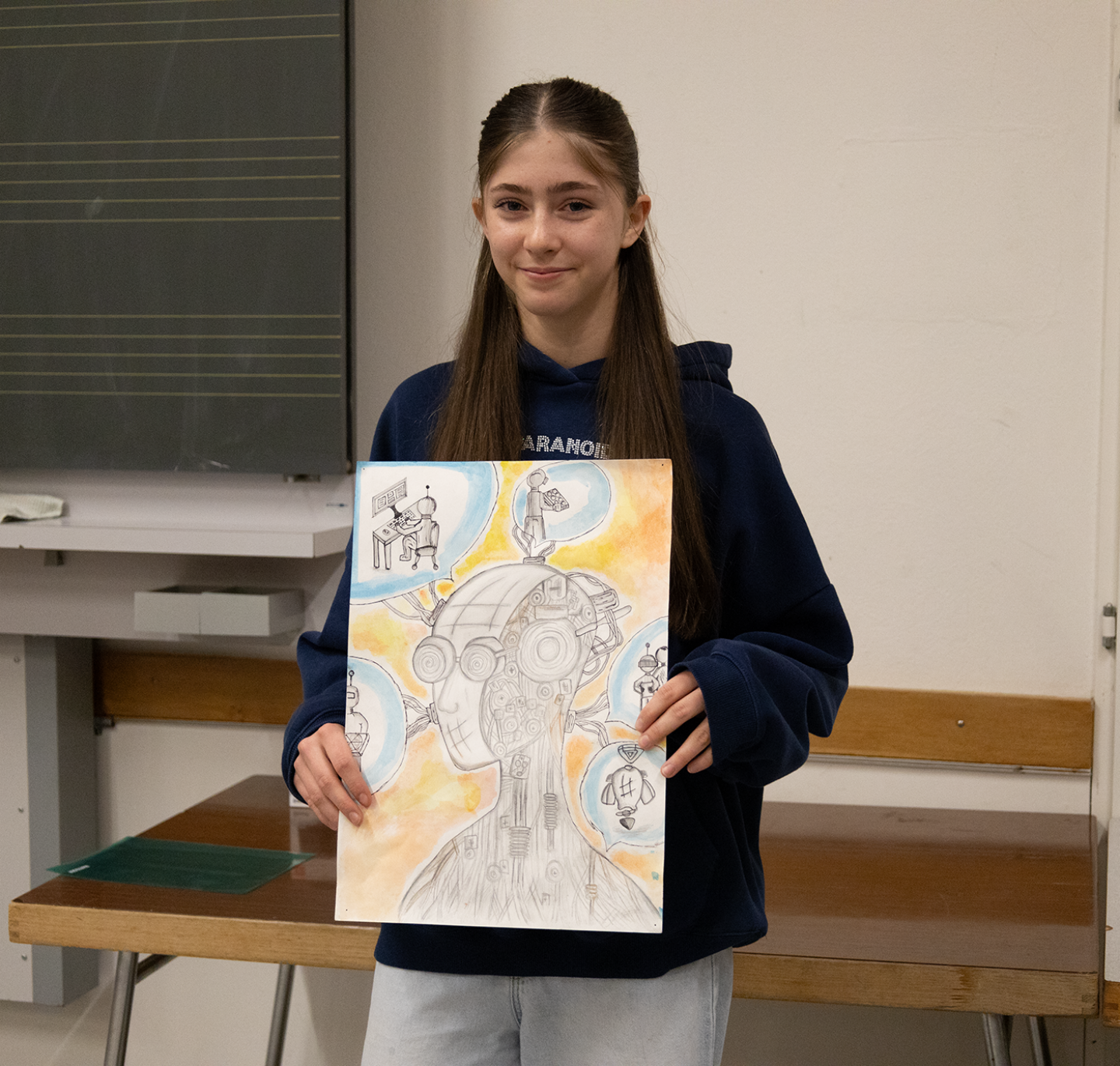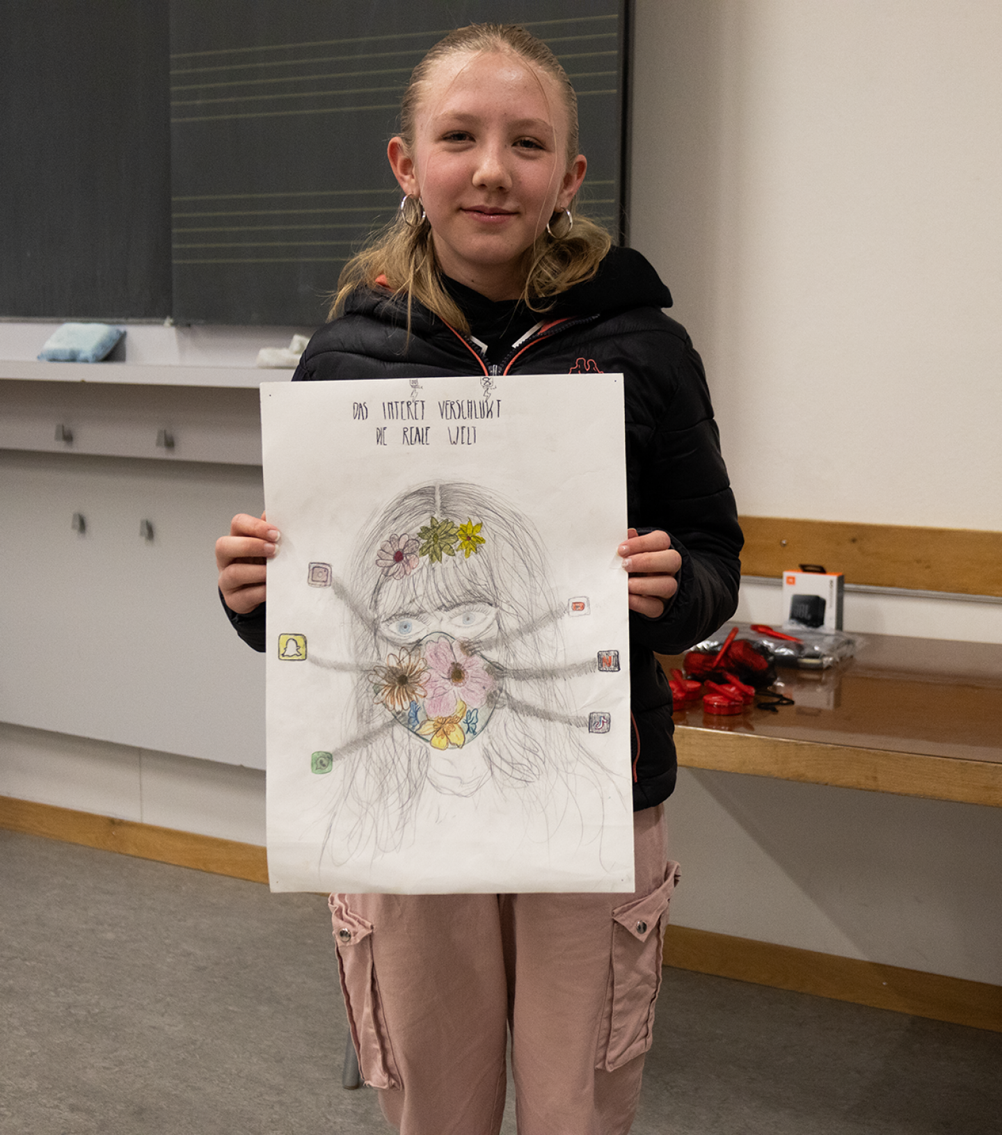 Nachfolgend die Zeichnungen der preisgekrönten Schülerinnen und Schüler zum Thema: Echt digital!