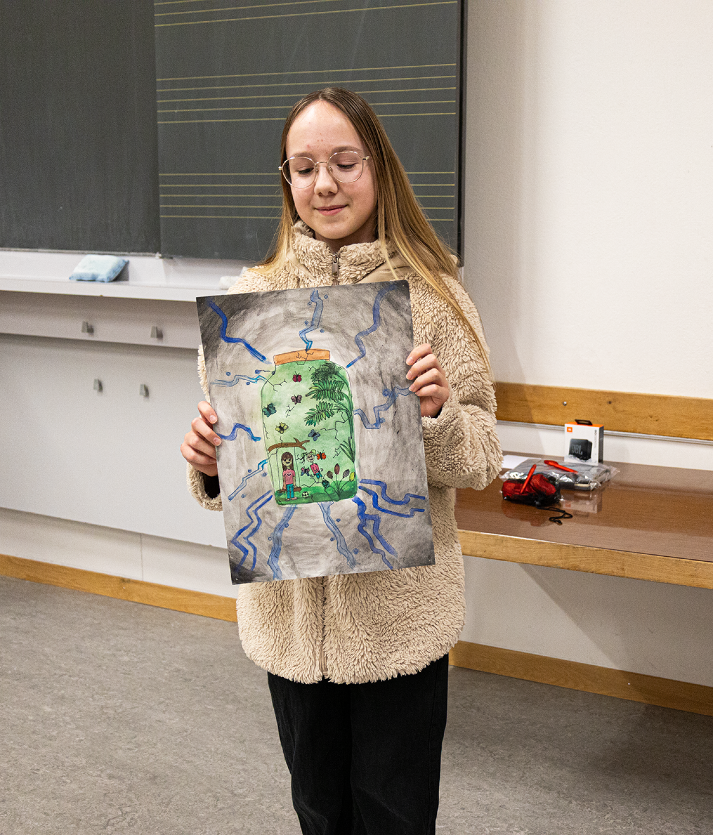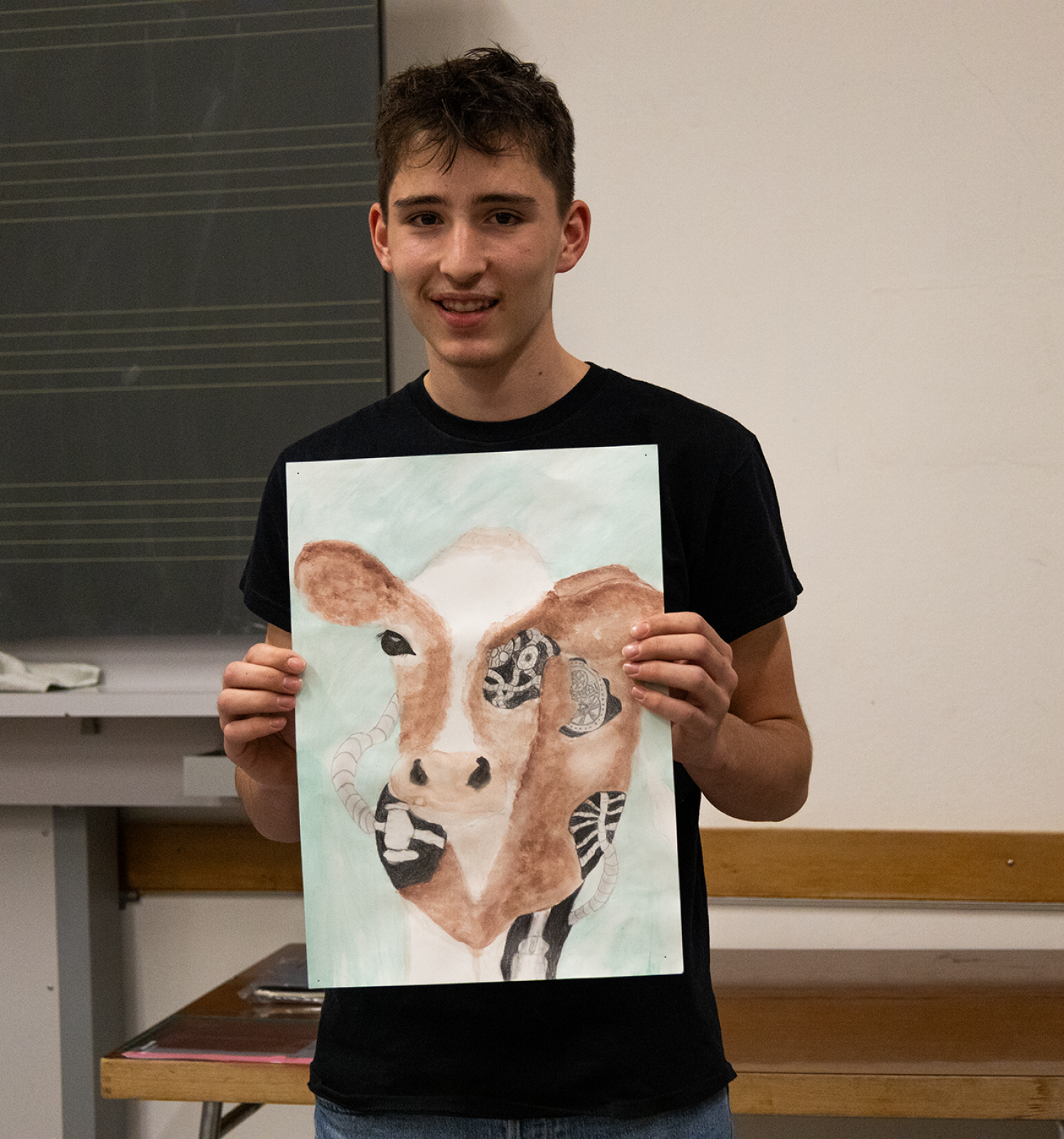 Je Kategorie wurden jeweils die besten 10% der Schülerinnen und Schüler prämiert. Bewertet wurden die Kunstwerke durch eine Lehrerjury. Wir kam die schöne Aufgabe zuteil, die Preisverleihung durchzuführen. Diese fand am Donnerstag, 20. Februar in der Schule Walkringen statt. Johannes Tscherrig, unser Auszubildender im 1. Lehrjahr, überreichte die von uns gesponserten Preise.