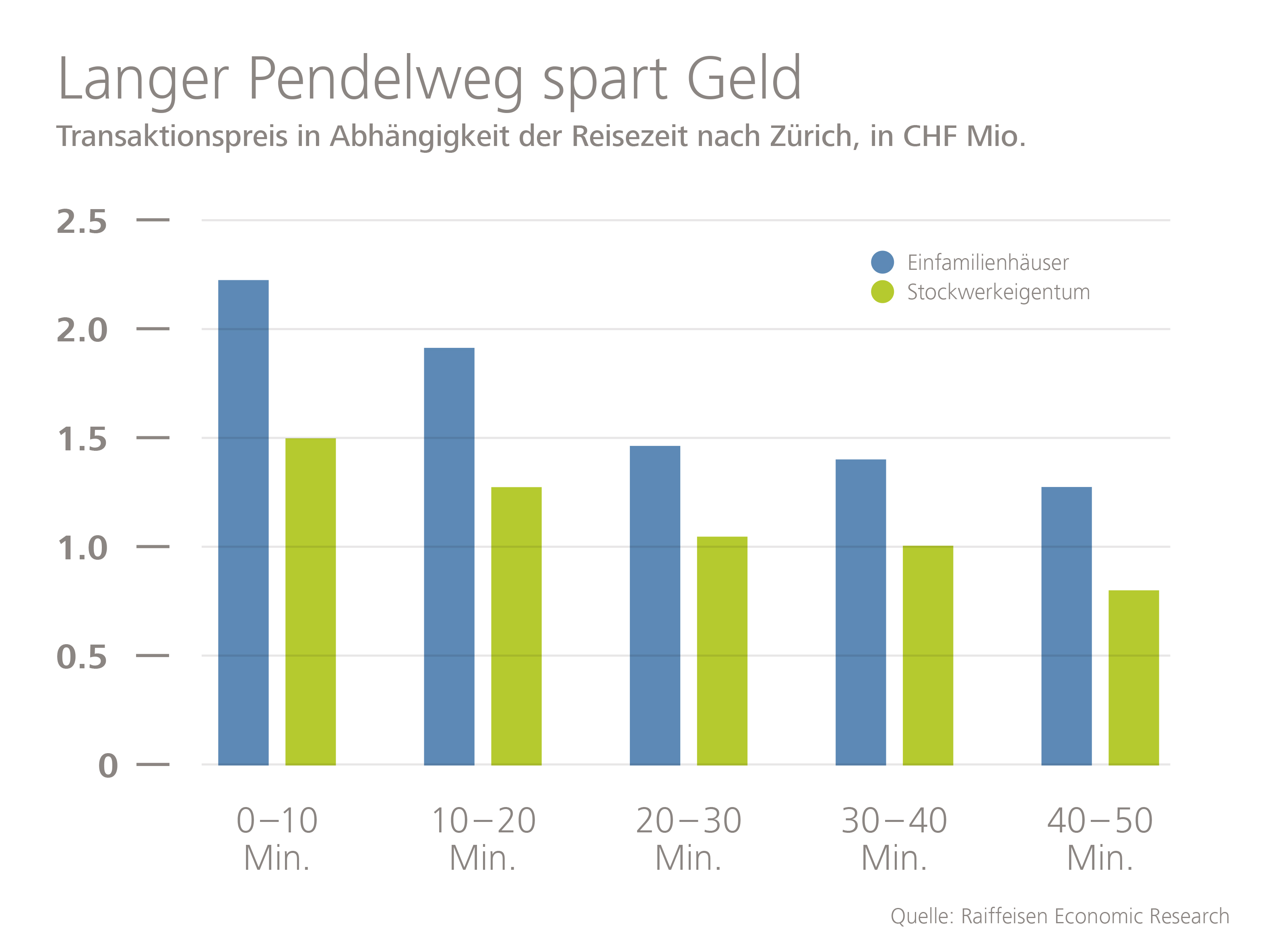 - Ein um eine Minute kürzerer Pendelweg in die Grossstadt verteuert ein Einfamilienhaus um 21'000 Franken.